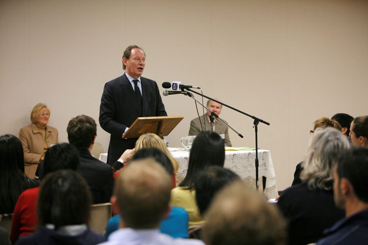 欧洲议会副主席宣布加入真相联合调查团,图为Edward McMillan-Scott在香港的集会上发言2006-8-26