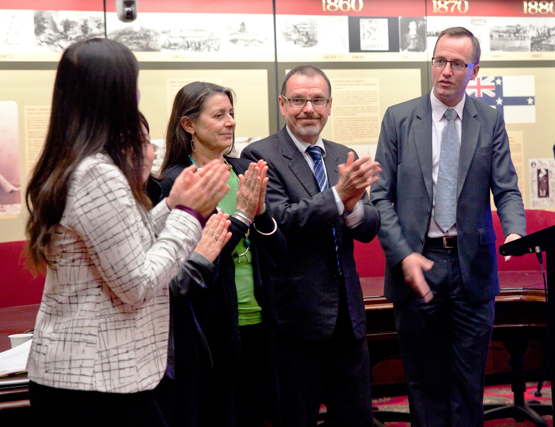纽省议员帕克先生(Jamie Parker)在向法轮功学员致谢词