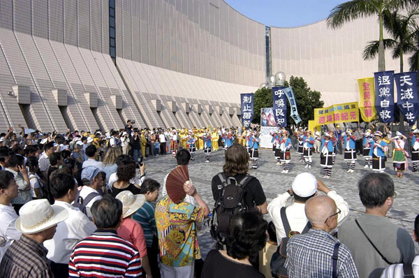 台湾法轮功学员腰鼓队赴香港参加声援千万人退出中共的活动 2006-4-28