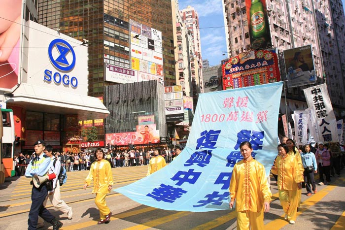 香港不同团体举办声援一千七百万退党元旦大游行图为揭露中共迫害2007-1-1