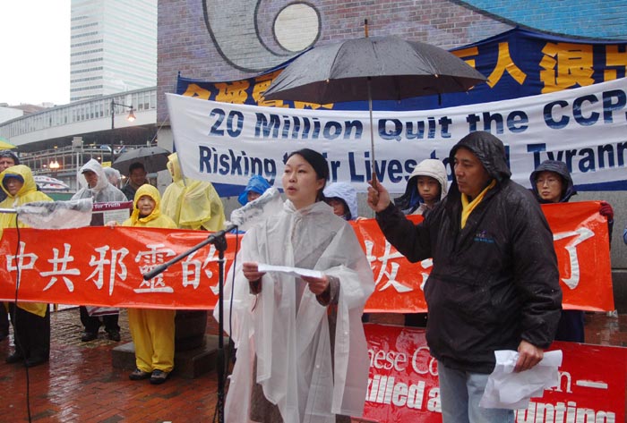 波士顿退党中心以(中共邪灵的根都拔出来了)为主题声援二千万勇士三退2007-4-15