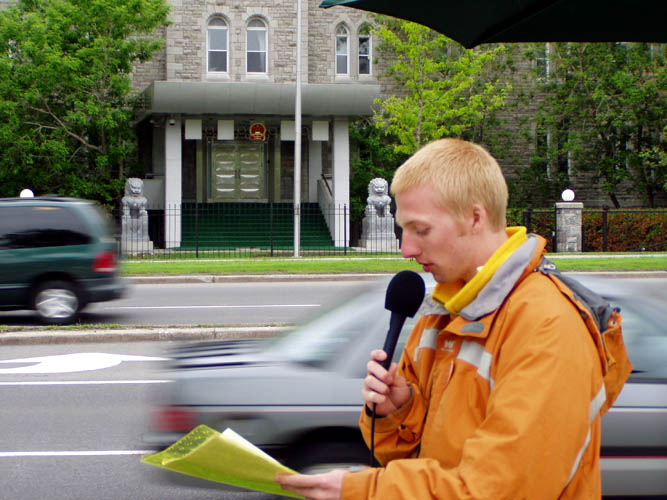 加拿大卡、埃两地学员中国驻加领馆前绝食24小时紧急营救李祥春