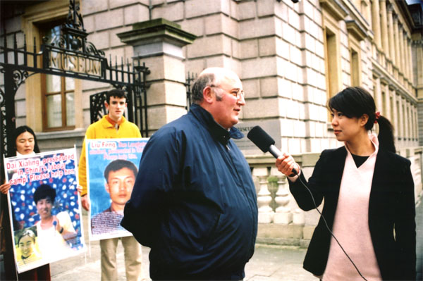 Published on 12/21/2003 爱尔兰法轮功学员呼吁营救被大陆非法扣留的刘峰和杨芳