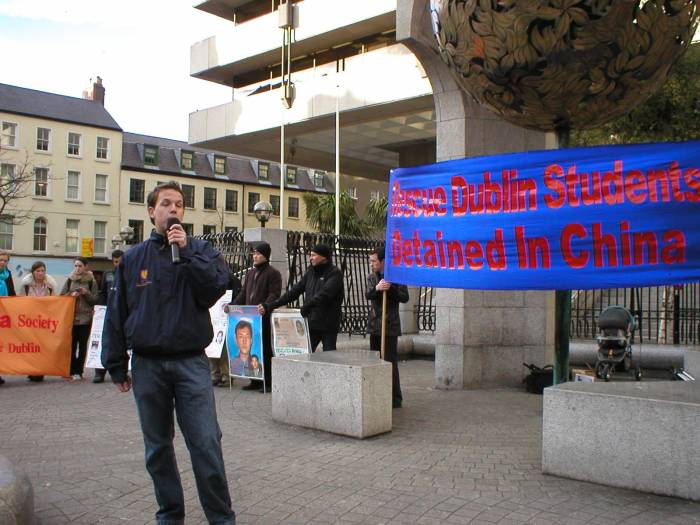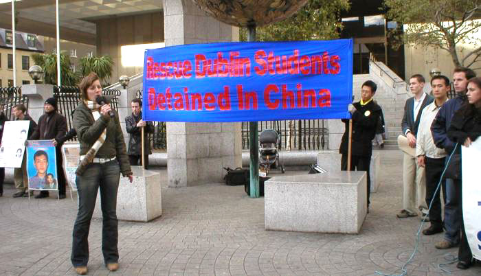 Published on 12/4/2003 爱尔兰首都三所大学的学生联合集会呼吁中国释放刘峰和杨芳(图)