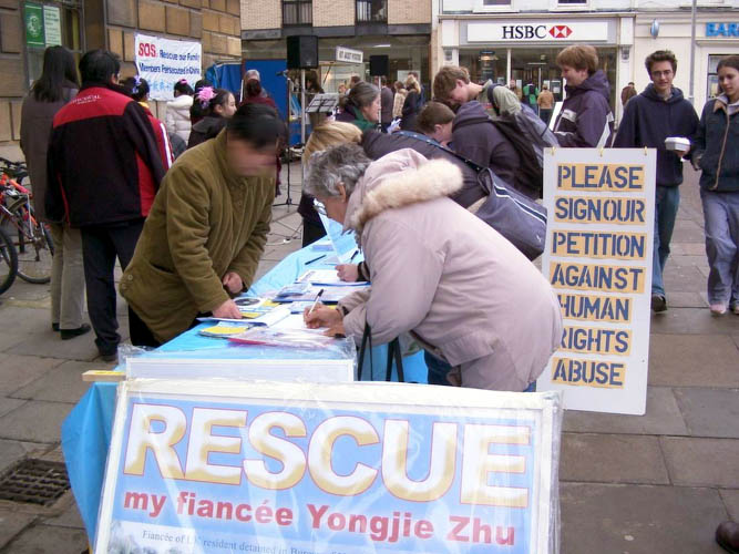 Published on 1/20/2003 英国剑桥大法弟子街头征签 呼吁营救亲人(图)