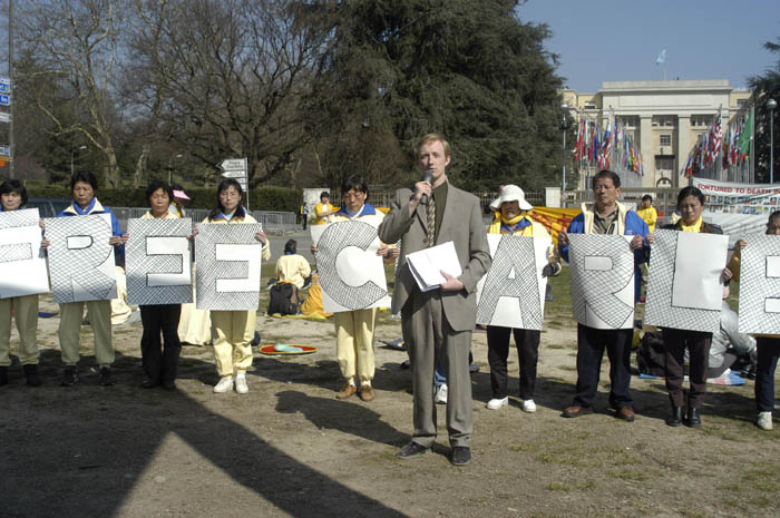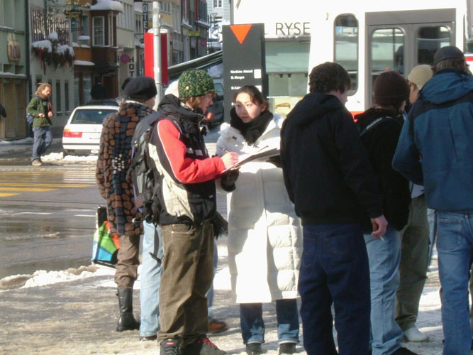 Published on 3/8/2005 		瑞士:征签营救在中国遭非法关押的法轮功学员(图)