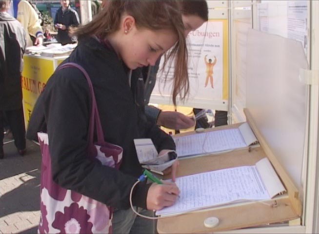 Published on 3/16/2003 德国学员慕尼黑街头讲真相吁营救林文蓉 民众踊跃接力征签(图)