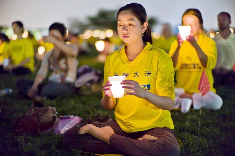 大连法轮功学员丛日旭遭三年冤狱 图为丛日旭妻子田璐在美国向国际社会呼吁