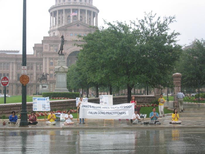 德州学员州政府前抗议江氏流氓集团南非雇凶杀人