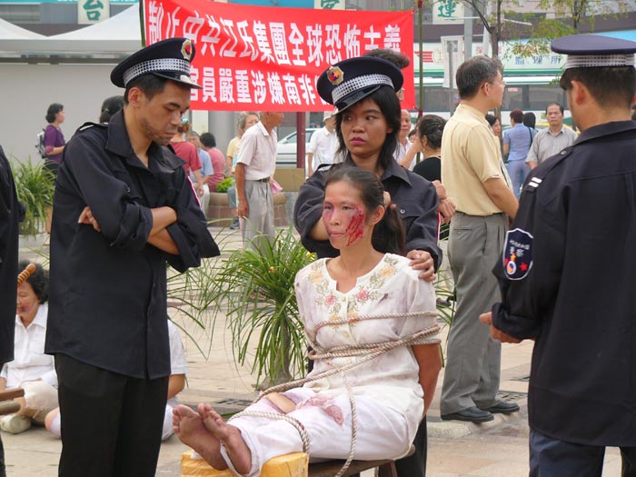 台中举行「法轮功学员南非遭枪击事件」记者会并演示法轮功学员遭受的酷刑