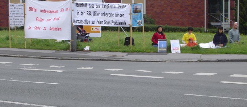 德奥大法弟子在中领馆前揭露江氏集团雇凶杀人