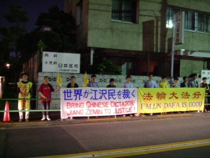 日本法轮功学员中国使馆前谴责江氏集团雇凶杀人