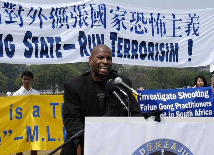 南非驻美使馆前集会 华府学员谴责江集团雇凶杀人