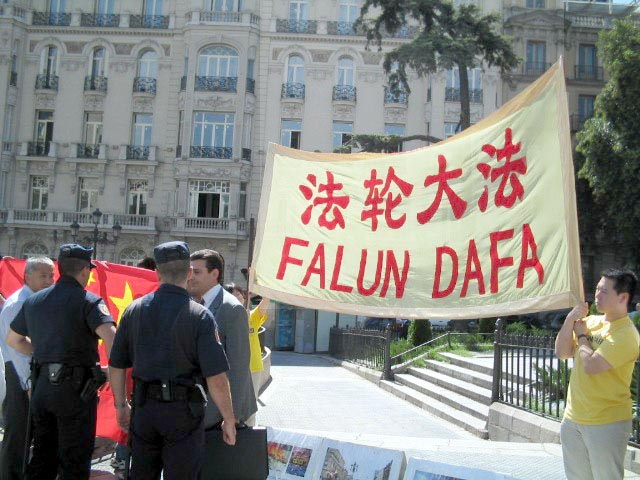 西班牙法轮功学员在贾庆林访问期间系列讲真相活动(图)