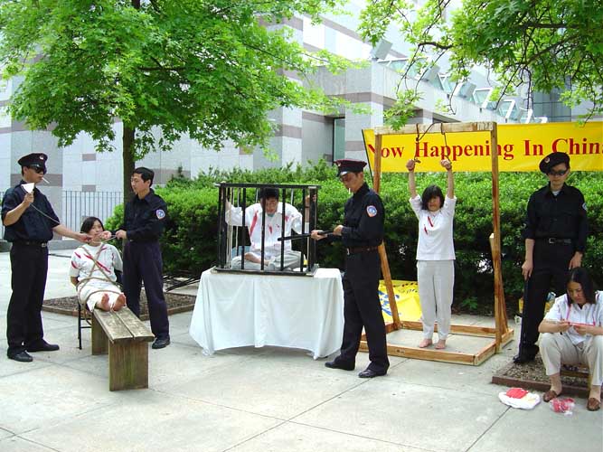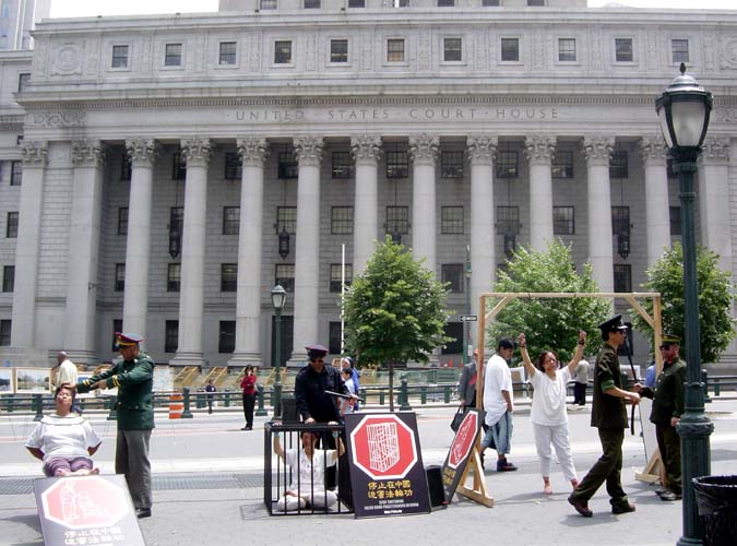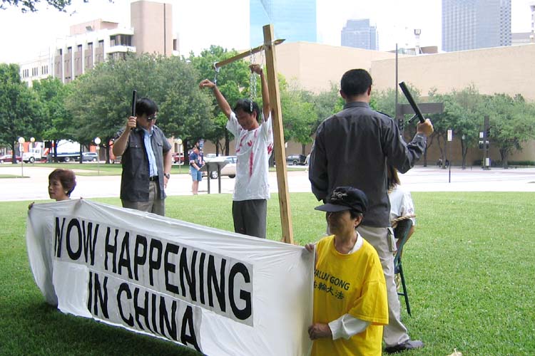 支持诉江案 达拉斯市中心上演审江剧和展示酷刑