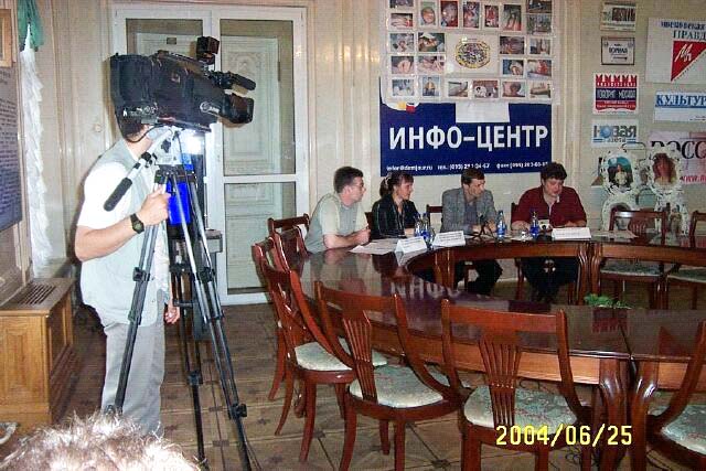 法轮功学员控告贾庆林,德永信一律师(左)和原告等在记者招待会上发言