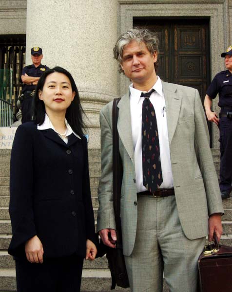 法轮功学员章翠英女士诉江案增添被告罗干图为章翠英和律师斯莱特瑞先生