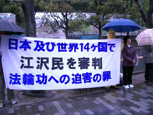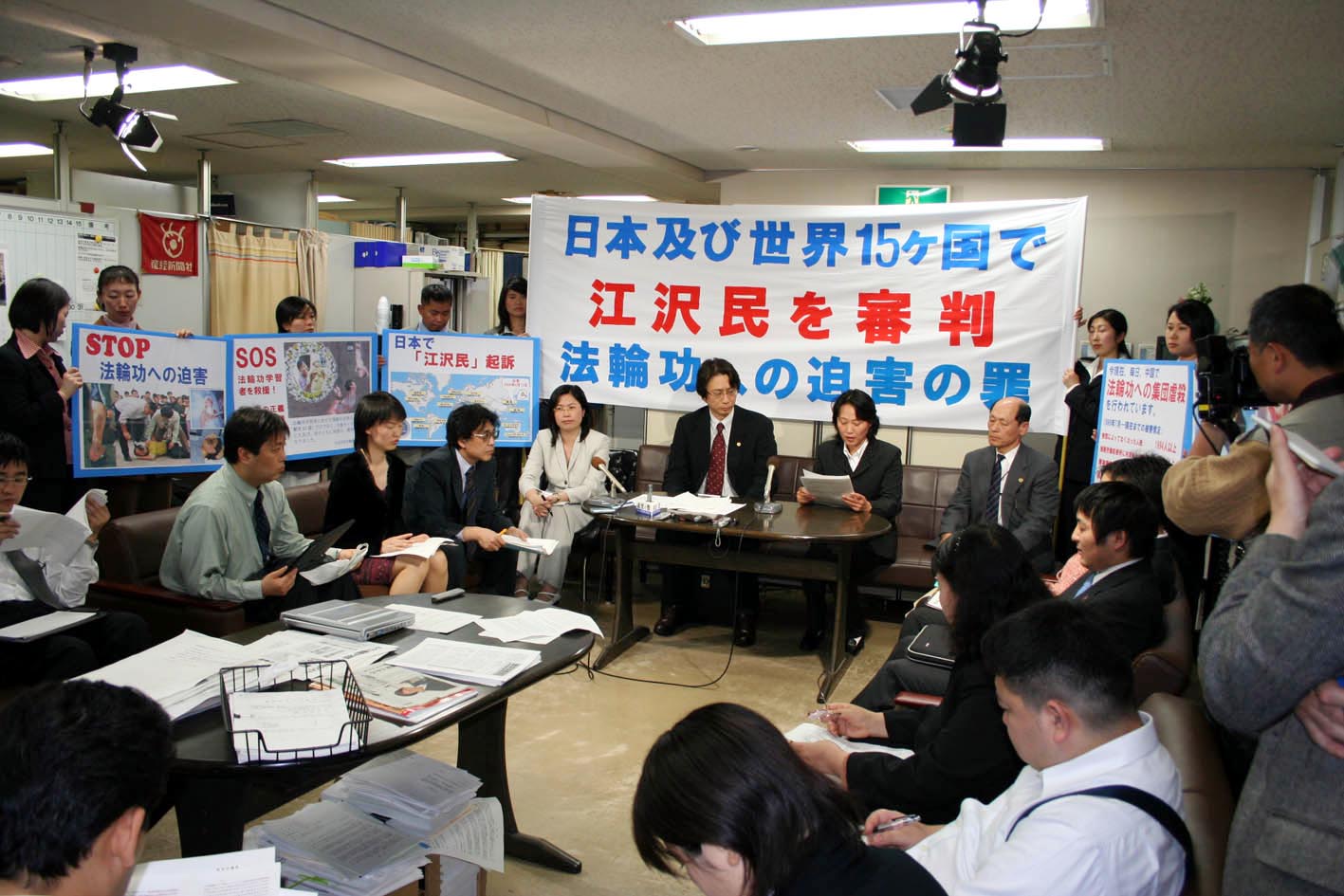 4月12日日本法轮功学员起诉江×× 图为召开记者招待会