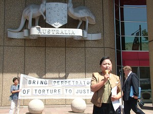 澳洲法院聆讯开庭薄熙来案原告将申请缺席判决图为原告潘宇述说在龙山劳教所遭受的酷刑2007-10-8