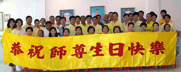 台湾澎湖学员集体拿寿桃向师父恭祝生日快乐 2006-5