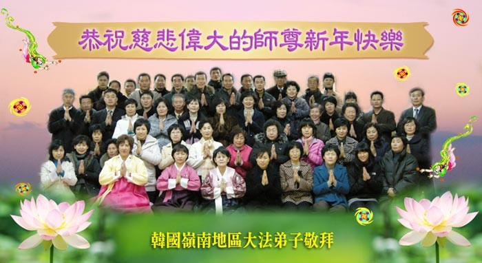 韩国岭南地区大法弟子恭祝慈悲伟大的师尊新年快乐!