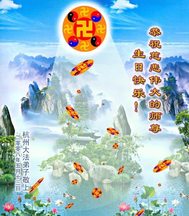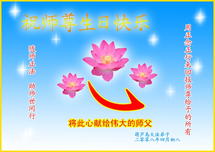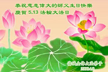 大陆大法弟子祝贺世界法轮大法日暨师尊寿辰 2008-5