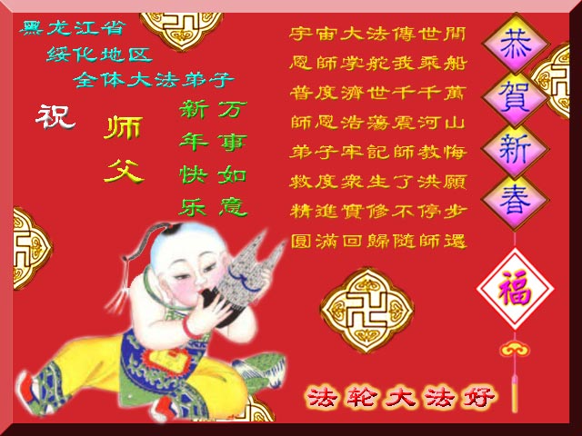大庆银浪村、红卫村、八百垧、杏五井、张铁匠、创业庄地区大法弟子向慈悲伟大的师尊拜年