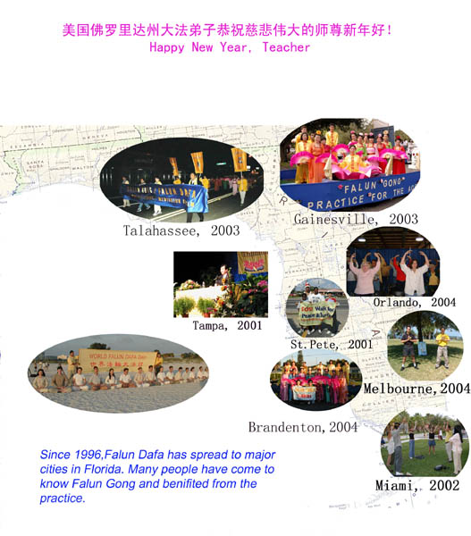 佛罗里达州大法弟子给慈悲伟大的恩师拜年