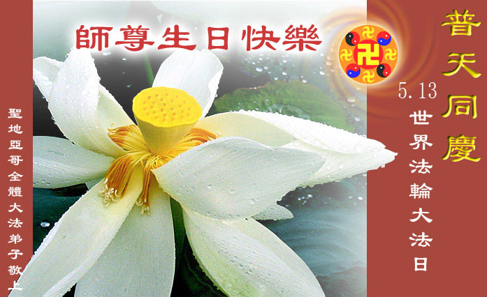 美国圣地亚哥全体大法弟子敬祝慈悲伟大的师尊生日快乐