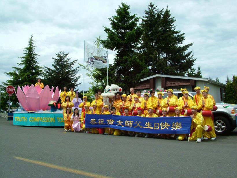 美国西北区华盛顿州和俄勒冈州法轮功学员于2005年5月14日恭祝师父生日快乐