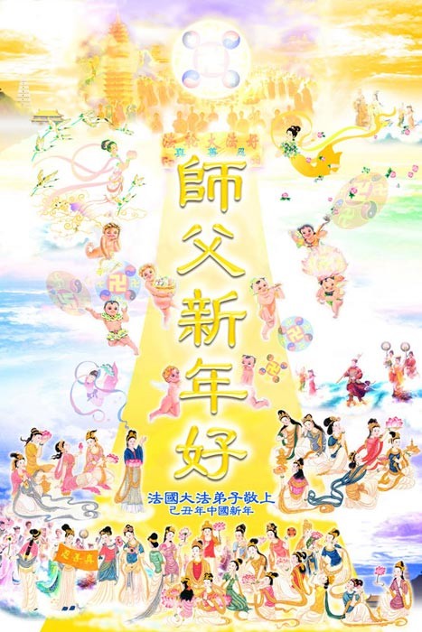 全体法国大法弟子恭祝慈悲伟大的师父新年快乐