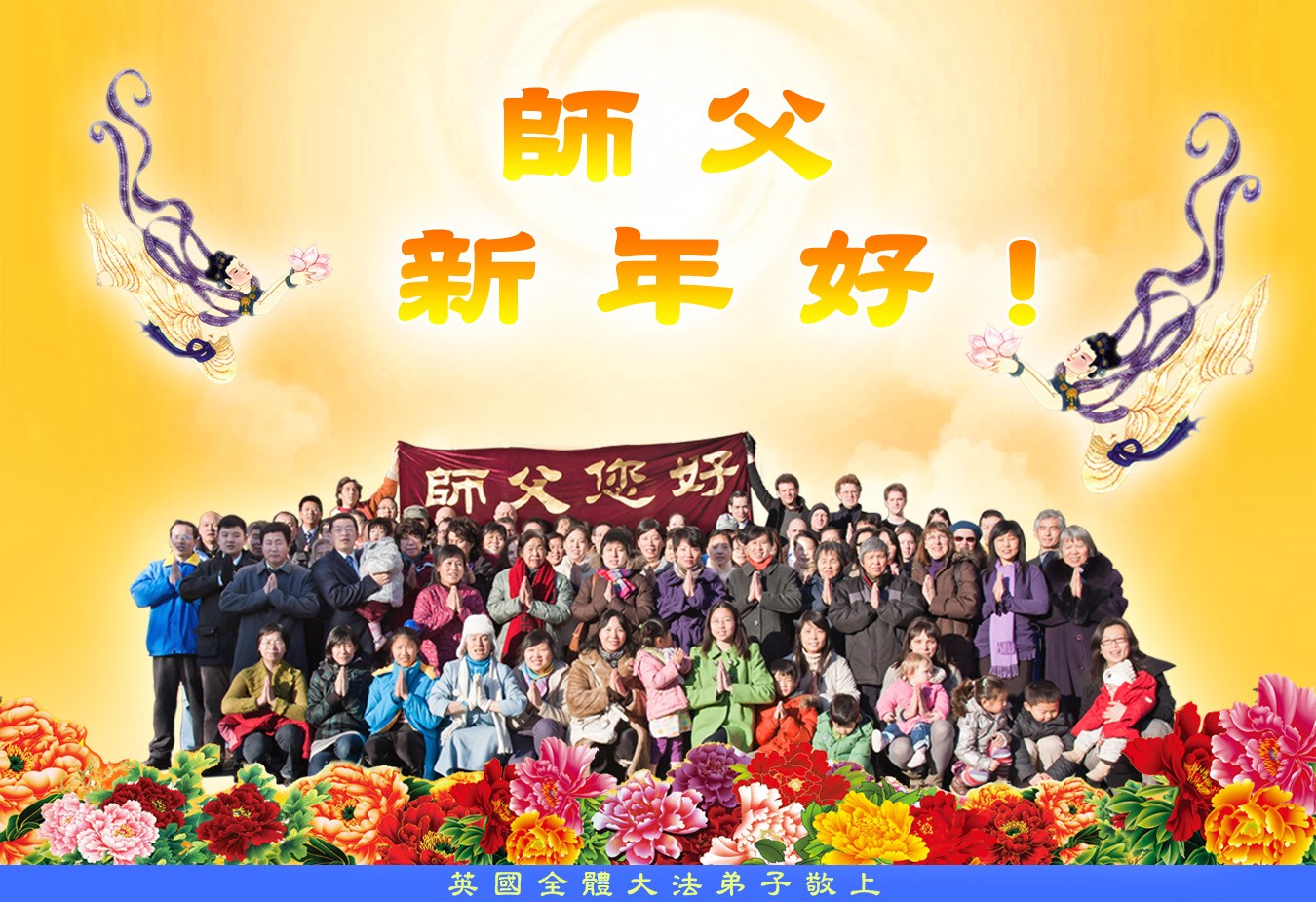 英国全体大法弟子恭祝慈悲伟大的师父新年快乐!