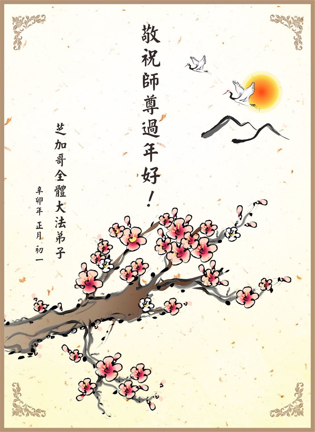 美国芝加哥全体大法弟子恭祝师尊新年好