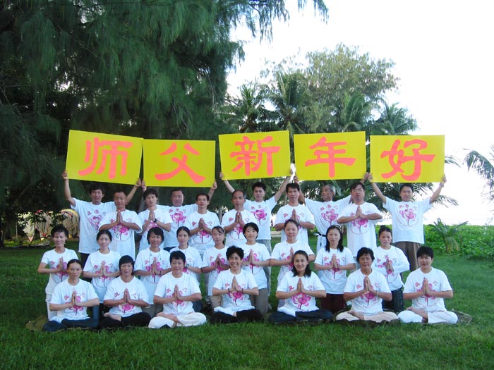 塞班岛大法弟子问候师父:“师父新年好!我们想念您!”