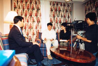 1999年7月,李洪志师父在纽约接受日本电视台记者采访.