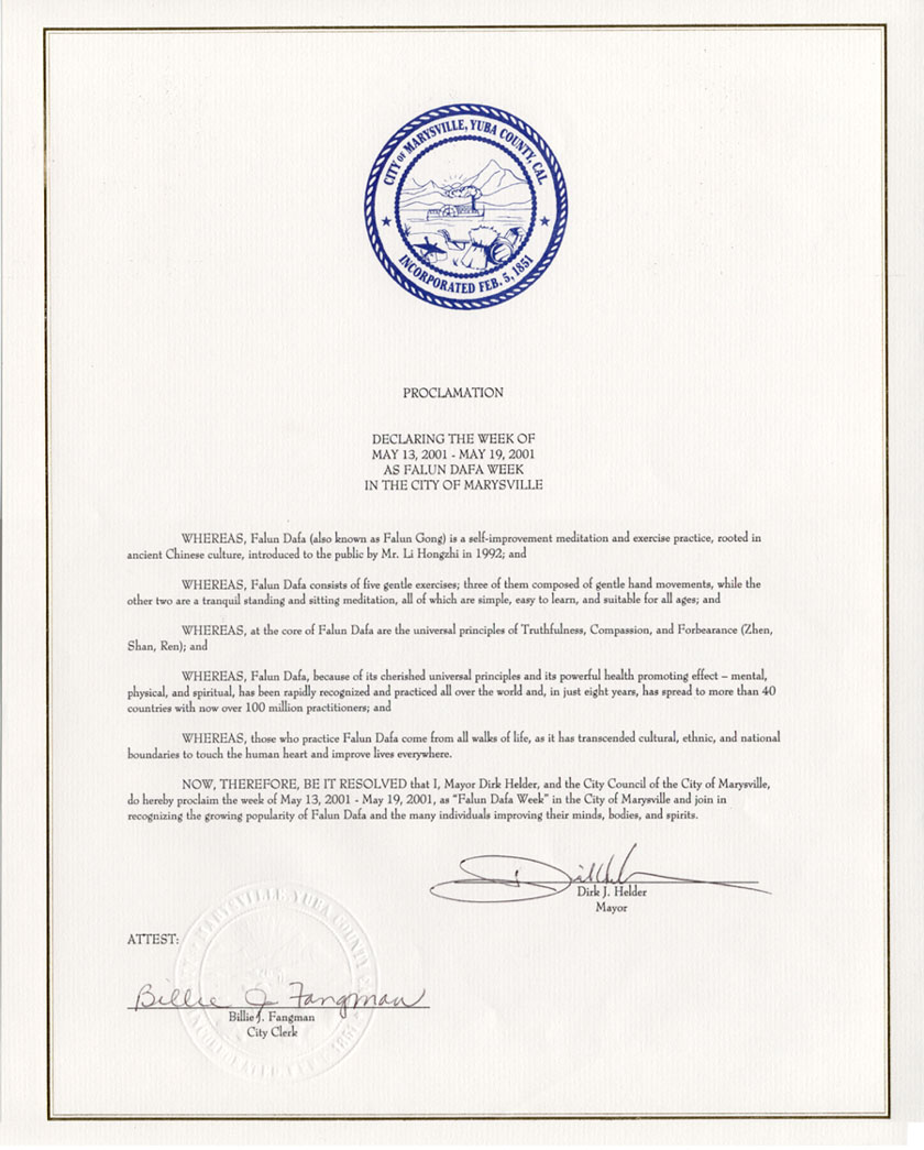 加州圣-布鲁诺市市长褒奖法轮大法