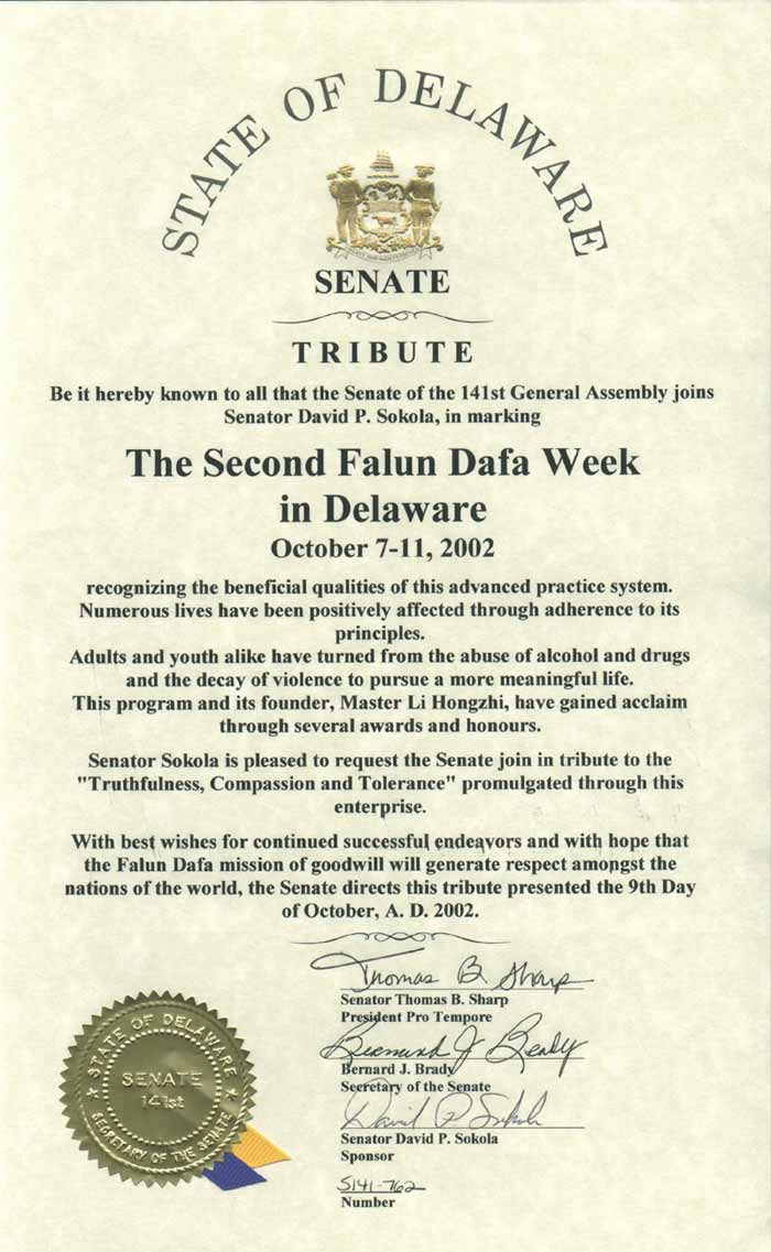 特拉华州纽卡斯尔市“法轮大法周”褒奖令