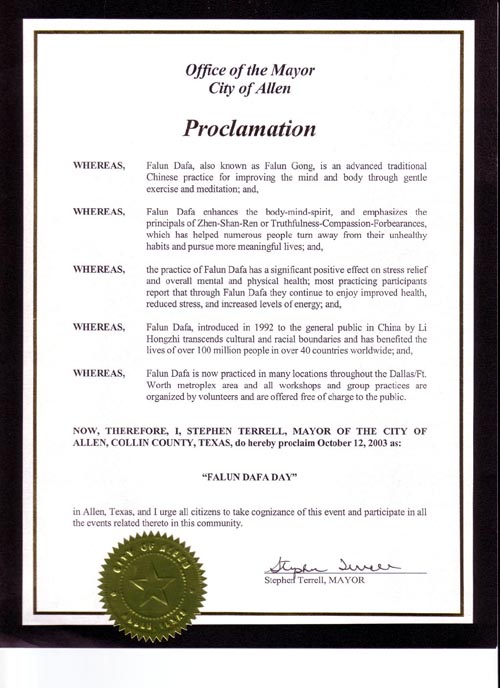 德州艾伦市市长宣布“法轮大法日”