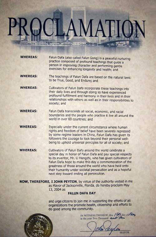 美国佛罗里达州杰克逊维尔市褒奖法轮大法日