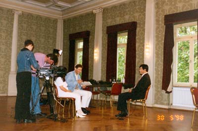 1998年5月,李洪志师父在法兰克福接受德国电视台记者采访