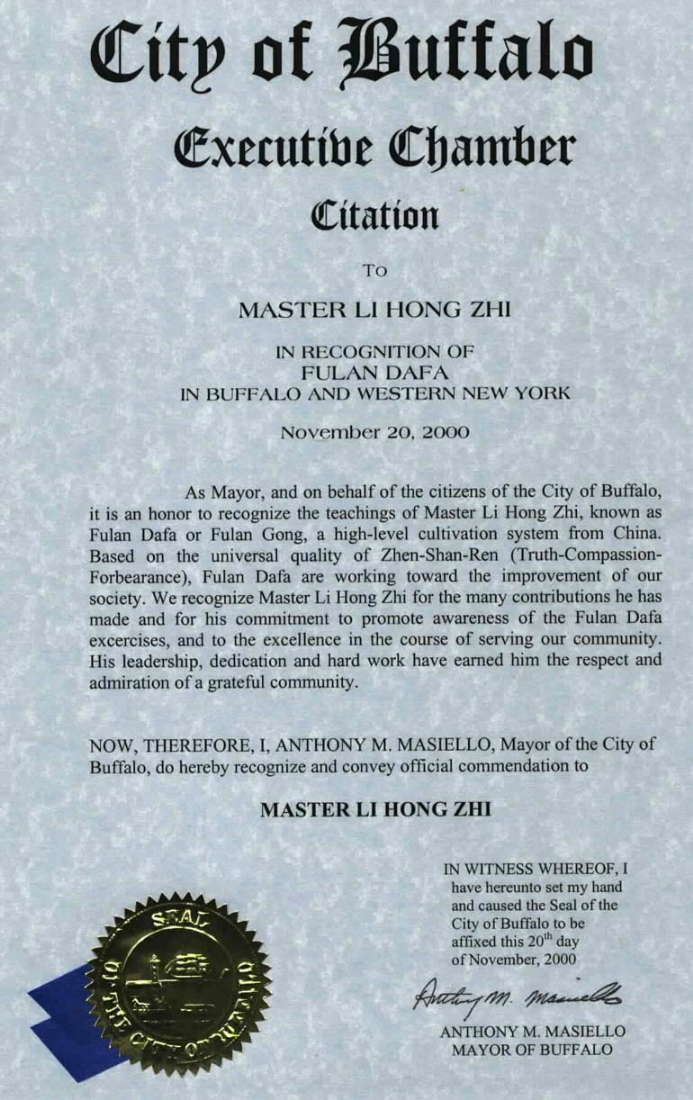 纽约州布法罗市执行议会褒奖状