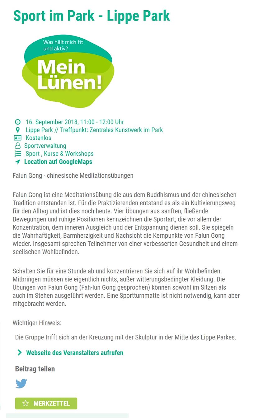 德国《鲁尔日报》报道法轮功学员的集体炼功,并采访报道了法轮功学员