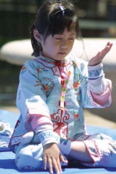 美国德州拉伯克-爱弗兰斯报图片:一名儿童正在炼法轮功第五套功法--神通加持法