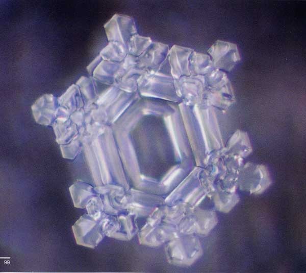 (正见网)听了萧邦的“离别”钢琴曲的水结晶照片 基本形状的水结晶被完整地分化得更小,成为地地道道的离别模样