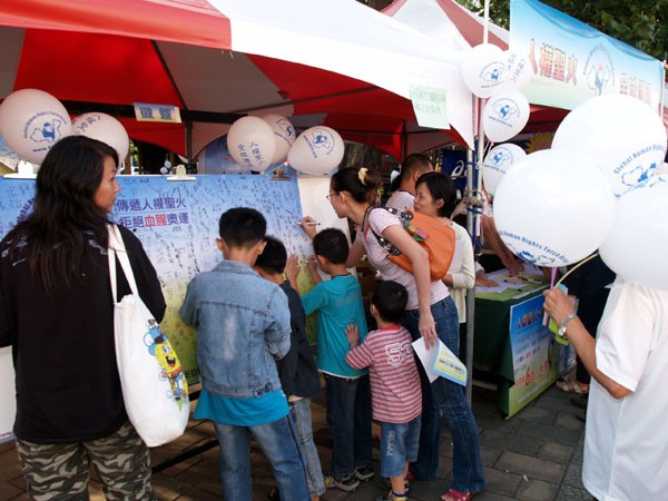 台湾宜兰县主办人权圣火之夜,声援反迫害图为人权圣火晚会现场,民众签名反迫害2008-5-31