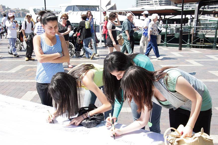 人权圣火传递奥地利图为民众签名声援人权圣火反迫害2007-9-11