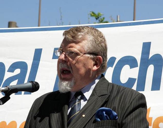 澳洲布里斯本点燃人权圣火,法轮功受迫害问题受瞩目图为神父帕克斯参加人权圣火活动2007-11-3