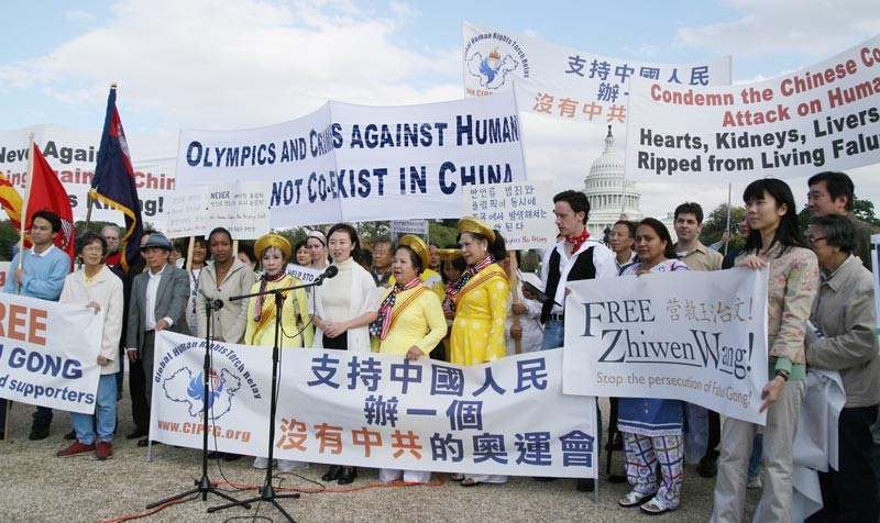 全球人权圣火传递,图为群众抗议迫害人权的北京奥运