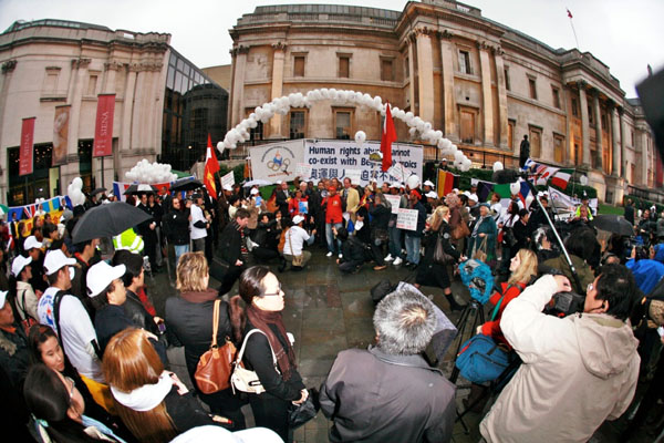 人权圣火抵达伦敦多位政要谴责中共迫害人权图为人权圣火传递仪式现场2007-10-25