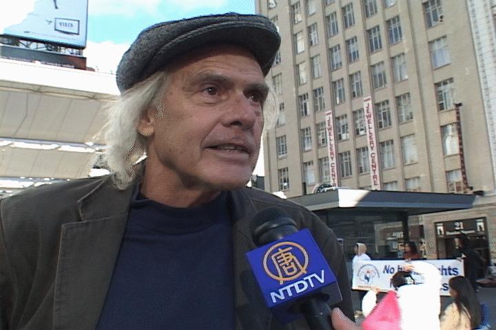 CIPFG在多伦多举办人权圣火周音乐会图为民众拉里•丹斯默尔表示活摘器官是非常残酷2007-10-28